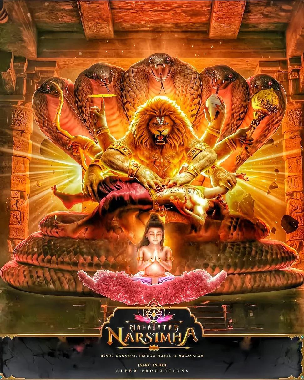 ⭐Some stories refuse to fade. The legend of Narasimha—Lord Vishnu’s fierce half-lion, half-man form—is one of them. It’s not just anger on display; it’s unshakable courage, faith, and the will to crush evil. Mahavatar Narasimha brings this ancient historical tale to the big screen with surprising accuracy and beautiful animation.