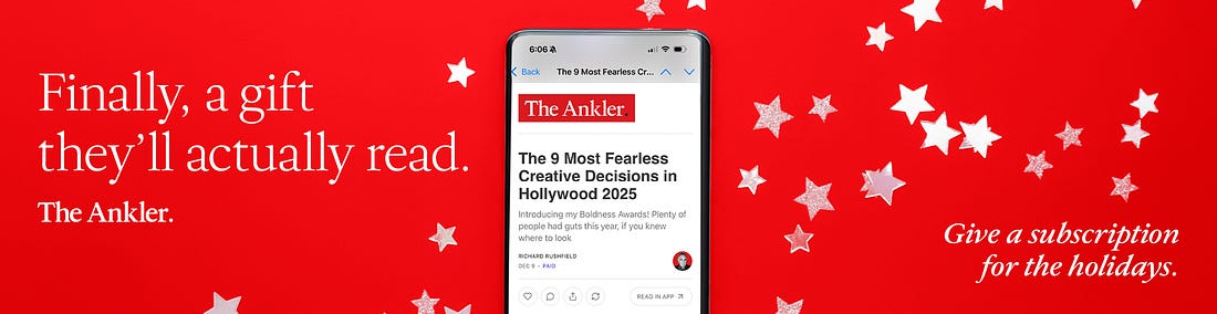 Subscribe on Apple PodcastsWatch on YouTubeIn Song Sung Blue, Hugh Jackman and Kate Hudson play a pair of Milwaukee-based singers — based on a real-life couple — who form a Neil Diamond tribute band called Lighting & Thunder and fall in love in the process. But describing the dynamic between her and Jackman in real life, Hudson opts for a different weather metaphor. “Hugh will come in like a tornado — he blows in and is gone,” Hudson, 46, tells me on today’s episode of the Prestige Junkie podcast. “I’m more like the hurricane — I come in, and then I stay. I’m like, ‘Let’s keep going!’ And he’s like, ‘I’m going to bed and then to work out.’” Hudson and Jackman’s boundless energy is one of many interesting things about Song Sung Blue, an unconventional kind of musical biopic in which the star is not Diamond himself but two ordinary people who become local celebrities by covering him — or “interpreting” him, in the parlance they would prefer. Written and directed by Craig Brewer (Hustle & Flow, Dolemite Is My Name), the movie is based on the real story of Mike and Claire Sardina, the Milwaukee couple who overcame great adversity after Claire was involved in an accident. I’m being vague to protect the film’s twists, but Song Sung Blue is based on a 2008 documentary of the same name, and Claire’s situation is heavily telegraphed in the film’s most recent trailer. Hudson and Jackman both had their breakthrough roles in 2000 — she with her Oscar-nominated turn in Almost Famous and he as Wolverine in X-Men — but they’ve never worked together, and didn’t really even know each other before Song Sung Blue came along. It was after an unusually emotional table read of the script — “maybe there was one person who didn’t really cry,” Hudson remembers — that she spoke to Jackman and laid out the stakes of the film for both of them. “I went up to Hugh and was like, ‘This movie only works if we work,’” Hudson tells me. “I want to make sure we’re setting ourselves up for an environment where we can feel really comfortable with each other. You know, I’m an Aries. I get in there, I’m aggressive. I’m game for anything, but I didn’t know Hugh — I was like, ‘I don’t know where your boundaries are.’” The two stars build a compelling romance, buttressed by Diamond hits like “Sweet Caroline” and “Cherry, Cherry,” but Hudson is the film’s revelation. As Claire, a single mother who performs as a Patsy Cline “interpreter,” meets Jackman’s Mike, Hudson captures both the pain of the life this woman has been handed and the unbridled joy she feels when performing. As Hudson tells me, that was the part of the character she connected to easily. “The most relatable thread to Claire and me is this intense need and desire and love for music — having to sing and the joy that you feel when you sing,” Hudson says. “That’s your happy place. For Claire and me, it’s the same.” On today’s episode of the Prestige Junkie podcast, Hudson tells me about how she and Jackman broke down those boundaries together, how she feels these days when looking back at what’s now a 25-year film career and a life in the industry (her mother, of course, is Goldie Hawn) and the surprising logistical challenges of promoting a movie that opens on Christmas Day. A special bonus for those of you who watch the YouTube version: Hudson’s fireplace mantle in the background, spectacularly decorated for Christmas. The podcast also includes the conversation I had with Christopher Rosen just hours ago, recorded immediately after the Oscar shortlists were announced on Tuesday afternoon. Who just got a boost in their campaign, and who is really going to need to scramble? Tune in to find out! And one more reminder: This Friday, Chris and I will be hosting a live mailbag episode of Prestige Junkie After Party, answering your burning questions about this Oscar season, Oscar races past, the movies of 2025 or 2026, or really anything else on your mind. Please send me your questions at katey@theankler.com or tune in live to ask us then! Got a tip or story pitch? Email tips@theankler.com ICYMI from The AnklerThe Wakeup Netflix whiffs latest WB movie biz pitch 5 Burning Questions Hollywood Should Ask After Trump’s AI Executive Order From guilds to Gavin Newsom: Erik Barmack on what studios and creatives need to reckon with now Hollywood 2026: Collapse or Comeback? Let’s Talk Odds Richard Rushfield finds reasons for actual hope as we stumble and bumble into the new year Hollywood Took Your Job. The Holidays Can Help You Get Your Next One Advice from top leadership coach Lacey Leone McLaughlin on navigating parties, family and awkward questions when your career is anything but jolly Need to Sell a Film or TV Show? Just Add Christmas Reps and filmmakers tell Ashley Cullins how a Yuletide twist can turn any story into a greenlight Hollywood’s Breaking Faster Than Film Schools Can Teach It. Inside the Scramble to Keep Up Professors are rewriting syllabi on the fly as studios melt, algorithms rule and screens go vertical, Elaine Low reports Rob Reiner and a Terrible Weekend Richard on the murder of the director and his wife A Writer’s Guide to Loving the Netflix–Warner Bros. Deal Joel Stein wonders, what’s the worst that could happen? TV in 3: HBO’s Horny Hockey Hunks Go Viral; CBS Showrunner Scramble Plus: Starz’s Shohei Ohtani home run Ellison’s Warner Bros. Bid: A One-Man Toxic Spill Our newest studio chief’s debut keeps getting worse, Richard writes When Mickey Met Sam Altman — and What It Means for Every Other Studio Now Scorched by the Streaming Wars, Bob Iger won’t let Mickey Mouse be steamrolled by Big Tech again, writes Erik Barmack 12 C-Suite Execs on the ‘Existential’ Fallout of a Warners Deal and the ‘Least Bad’ Outcome Lesley Goldberg reports on why the acquisition could be as destabilizing for the buye