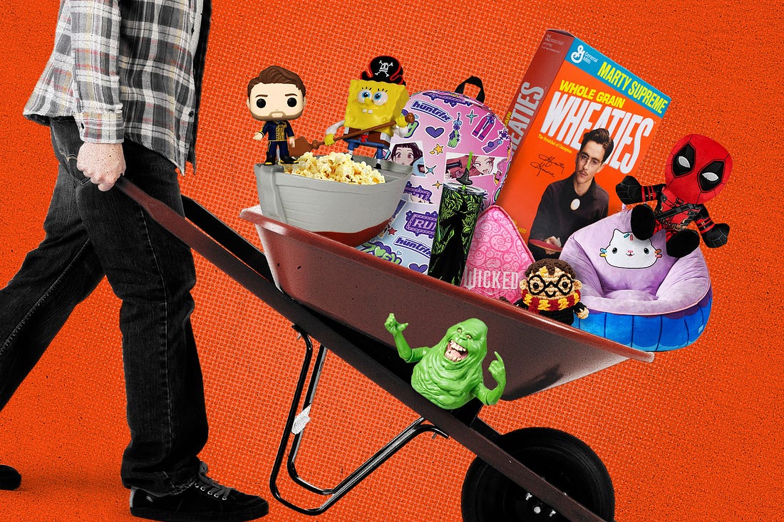 Timothée Chalamet’s ‘Marty Supreme’ Wheaties Sold Out. What That Says About Fandom TodayMerch is on fire even as movies and box office struggleI write Crowd Pleaser from Ankler and Letterboxd that covers audience and moviegoing trends. I wrote about small-town theaters fighting against studios, scooped how Paul Thomas Anderson landed in Fortnite and drove across 20 states to visit 58 U.S. theaters. Email me at matthew@theankler.comEarlier this month, A24 sold out of a $25 box of Marty Supreme–branded Wheaties — a novelty item tied to Timothée Chalamet’s fictional table-tennis phenom — in a matter of hours. That might not sound remarkable until you consider that a standard box of Wheaties typically retails for under $6, and that the movie itself had yet to reach a wide audience. But the cereal wasn’t really the product. It was a signal — one that fans immediately recognized and raced to claim. In the weeks leading up to the film’s release, Marty Supreme merch had already become an obsession online. Fans waited in long lines at pop-up shops in New York and Los Angeles to buy $250 windbreakers emblazoned with the film’s title. Secondary-market prices for the jackets quickly soared into four figures. When A24 partnered with Regal on a custom Marty Supreme popcorn bucket — a giant orange ping-pong ball available to Regal Crown Club members who purchased advance tickets — it was less a concession item than a badge of belonging. The Wheaties box, in particular, was a reference to an inside joke from the film itself, in which Marty assures a potential business partner that his future success is so inevitable that he’ll one day be “staring at him from the cover of a Wheaties box.” By turning that line into a physical object, A24 wasn’t just selling merchandise — it was collapsing the distance between the movie, the marketing and the fan experience. That kind of physical-world urgency has become especially potent for Gen Z. “I know I’m absolutely gonna love it, so that’s why I bought it,” wrote one fan on Reddit. “When it inevitably sells out, I’m gonna wanna buy it on eBay when the price probably skyrockets.” To understand why moments like this now matter as much as — or more than — opening weekend, I spoke with the five consumer-products chiefs from Warner Bros., Universal, Paramount, Sony, Lionsgate, along with licensing executives and fan-creators operating in Hollywood’s increasingly porous merch ecosystem. The Marty Supreme frenzy is less a one-off curiosity than a sign of how today’s blink-and-you-miss-it hype machine works. With the box office under strain, and competition for attention more brutal than ever, merch is a fast, social-first way for studios to tap into rabid fan enthusiasm — and, increasingly, to follow it. “You’re always aiming for two things,” says Bruno Maglione, president of IMG Licensing, which has overseen campaigns for properties including Fast & Furious and Gabby’s Dollhouse. Revenue, of course, still matters. “But the other utility,” Maglione says, “is serving as a marketing vehicle. Anything that can help to put you into the zeitgeist is going to be useful.” In other words, in today’s Hollywood, a sold-out cereal box can say more about a movie’s cultural footprint than its opening-weekend gross ever could. When Fans Lead the MarketThat shift quietly is reordering Hollywood’s merch economy. As studios chase signals like the Marty Supreme sell-out, fans have become the industry’s earliest — and most accurate — market testers, surfacing demand long before anything is officially licensed or mass-produced. Andrew Ortiz founded Super Yaki a decade ago to serve what he describes as “AMC A-Listers and Letterboxd users” — moviegoers who want merchandise that references a film without simply slapping its title on a hoodie. The appeal is subtle: items that function as an inside joke for people who’ve actually seen the movie (or at least watched the clips and trailer). That sensibility clicked in a big way with Challengers, the Amazon MGM tennis drama starring Zendaya, Josh O’Connor and Mike Faist. Ortiz designed a “New Rochelle Challenger” T-shirt, a reference to the central event that binds the film’s thorny throuple. Unsure how the studio would react, he emailed a contact at MGM asking whether it was okay to sell the shirt. “Well, we’re not going to say anything if you do it,” the representative replied — effectively giving him the green light. “We were sort of promoting the movie for them at that point,” Ortiz says. The shirt quickly became Super Yaki’s best-seller, with thousands of orders pouring in — so many that Ortiz had to rent a U-Haul to transport inventory. That dynamic — fans identifying demand, studios quietly tolerating it, and success proving the market exists — is increasingly common. But it has also prompted studios to absorb those strategies themselves. Indie distributors, including A24 and Neon, have begun bringing the “if you know, you know” aesthetic in-house, hiring designers to create trend-forward merchandise rather than outsourcing that work to independent creators. The shift forced Ortiz to adapt. Super Yaki now focuses less on studio-specific IP and more on celebrating moviegoing itself, often partnering directly with independent theaters instead of relying on studio properties. “We had to pivot,” he says. “The studios caught up.” USC professor Henry Jenkins, who studies media and participatory culture, says the cycle is familiar. “The fans are usually first to market,” Jenkins says. “That’s where the sense of edging the fan craftsman out — and profiteering off of their risk and success — becomes more of an issue.” Still, Jenkins notes, studios face their own realities. They have a legal and financial responsibility to control and monetize their intellectual property. The challenge is finding a middl