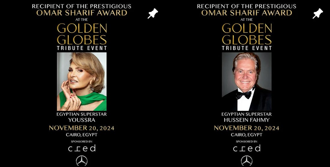 Eager to recoup any funds and benefit from their investment, the new owners embarked on a series of seemingly desperate attempts to scrape dubious value out of the Globes brand. These include a “Golden Globes International Icon of the Year” award, presented in the yachting hub of Bodrum, Turkey, and a “Golden Globes Tribute Event” in Cairo paying homage to “icons of Arab cinema.”