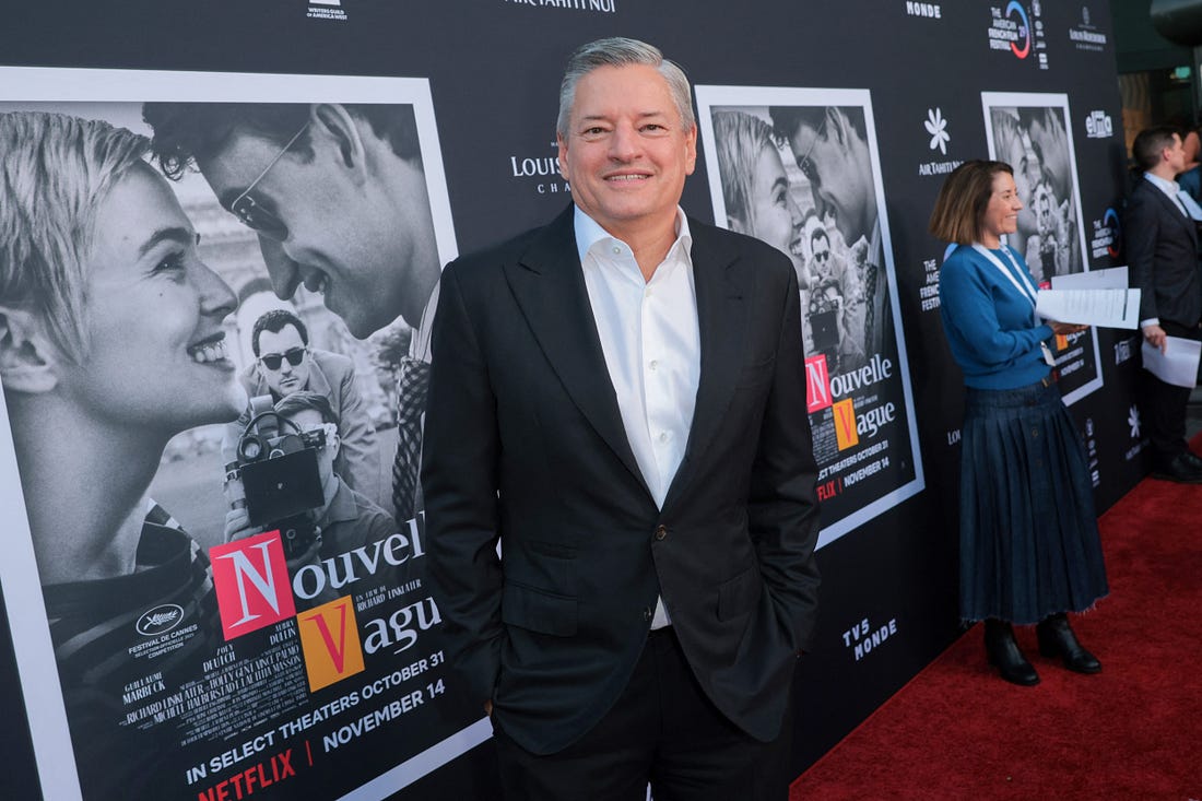 THEATRICS Netflix co-CEO Ted Sarandos at the premiere of Nouvelle Vague, Richard Linklater’s movie about Jean-Luc Godard’s Breathless, one of the enduring film classics of our time. (Etienne Laurent/AFP via Getty Images)