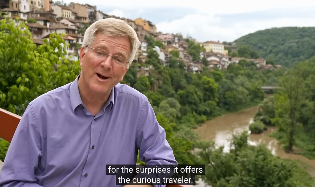 This one I did on my own, since most of the kids are en route to be home for Christmas. I have never been to Central Europe, but as luck would have it, I watched a Rick Steves episode on [country redacted] a few weeks ago. He spends time in [city redacted], and here’s a screenshot from the beginning to the episode: